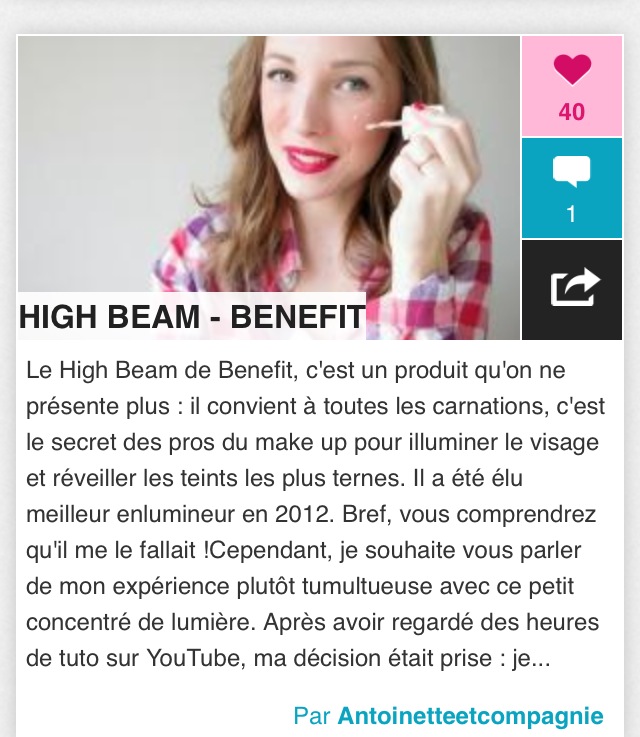 Merci pour cet article… « Antoinetteetcompagnie »… Les « Benefit » sont d’excellents produits!