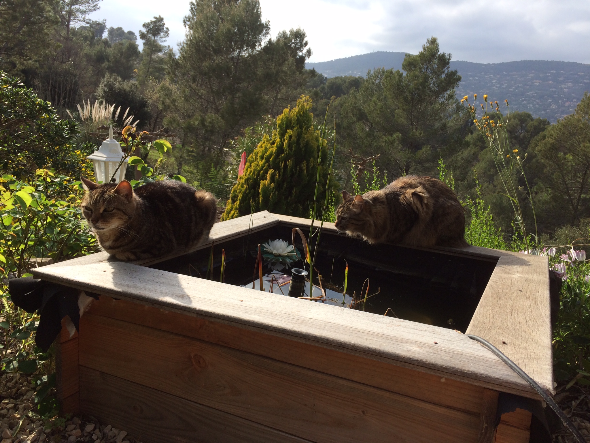Les minettes commencent le « bronzage » au bord de leur piscine (il va falloir que je pense a aller chercher de nouveaux poissons rouges!!!)…