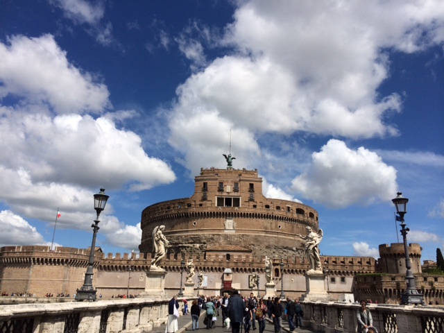 Le Castel St. Angelo… Château, puis prison (l’histoire de la Tosca de Puccini… N’ayant pu sortir son amoureux de cette prison, elle se serait jetée d’en haut du château de désespoir!)