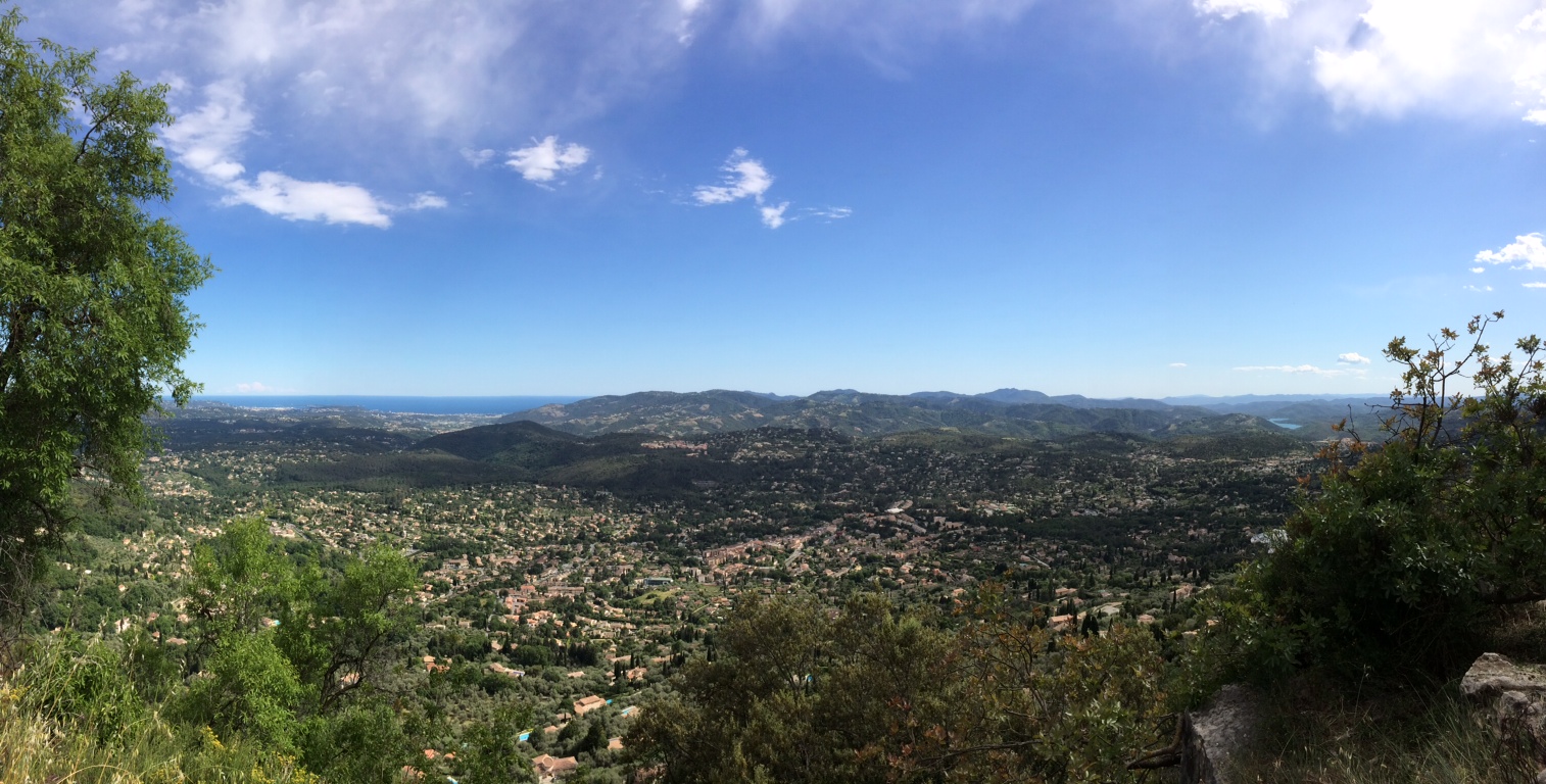 Voilà une jolie vue depuis Cabris, petit village des Alpes maritimes, offrant un panorama sur Mandelieu, Cannes et l’est du Var (lac de saint Cassien)