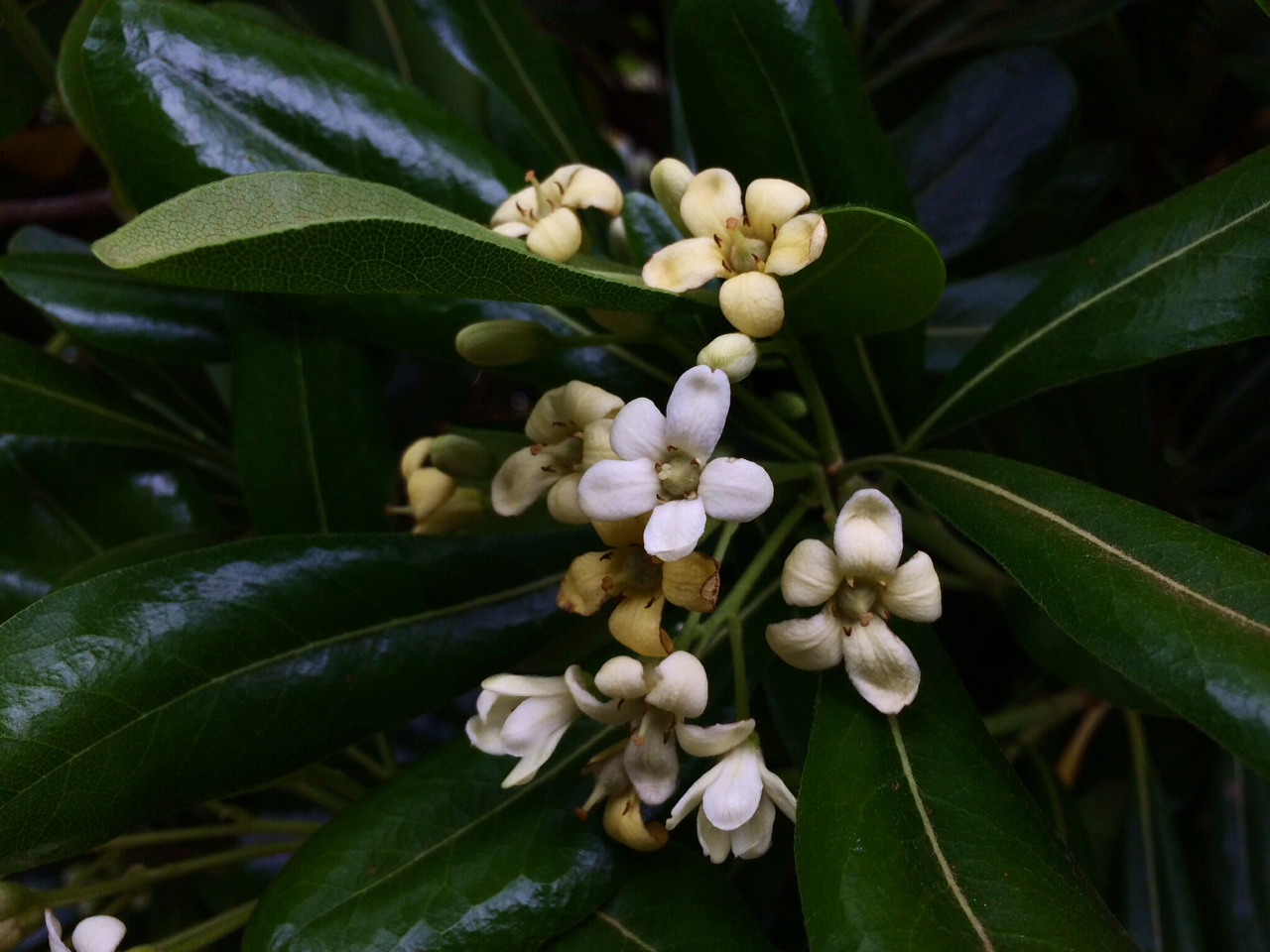 Le pittosporum dont les fleurs exhalent un parfum délicieux de fleur d’oranger, particulièrement en fin d’après midi….