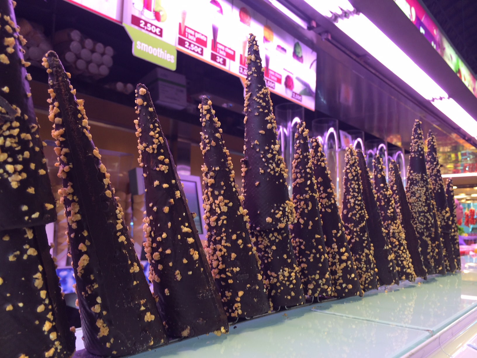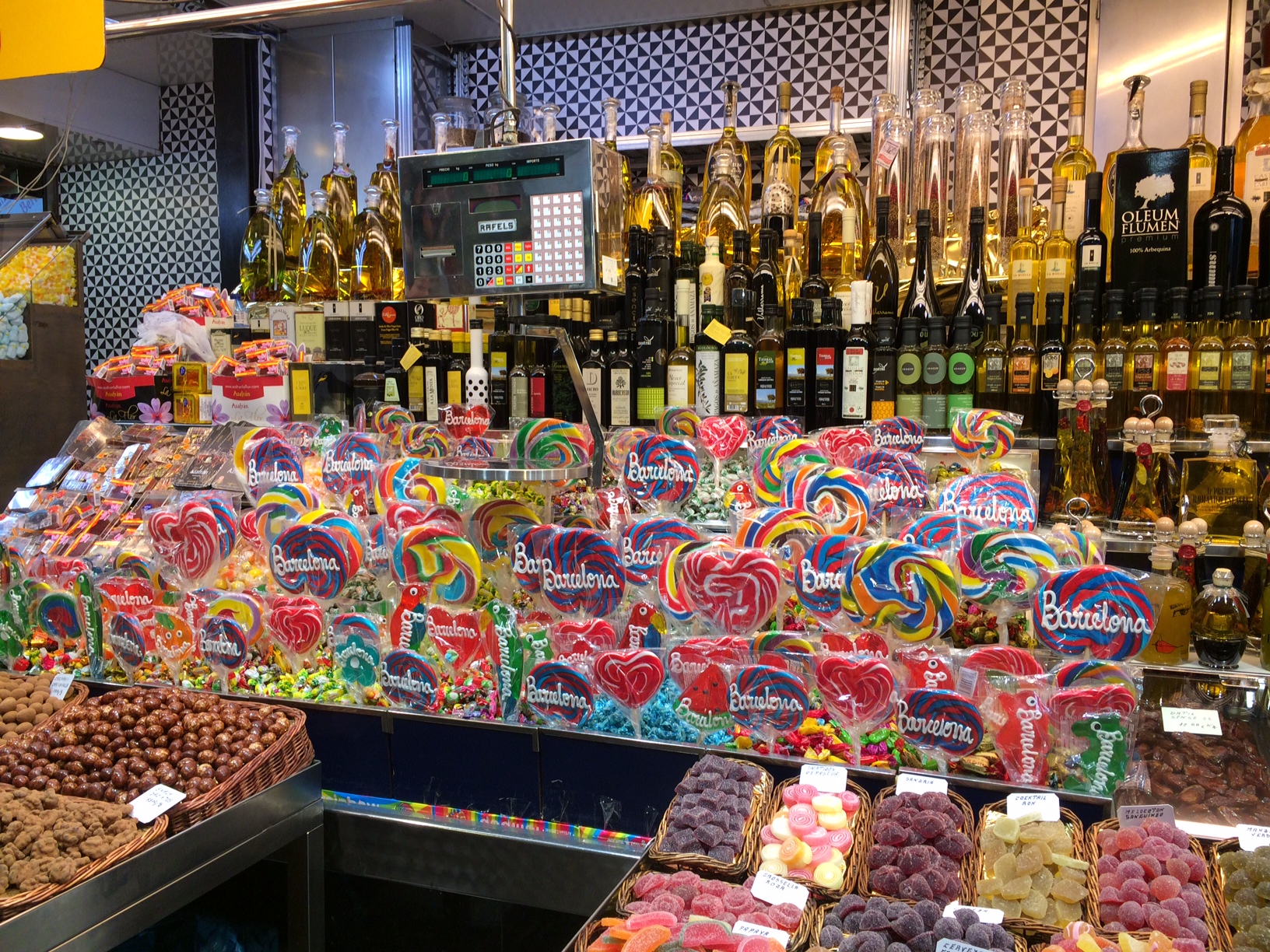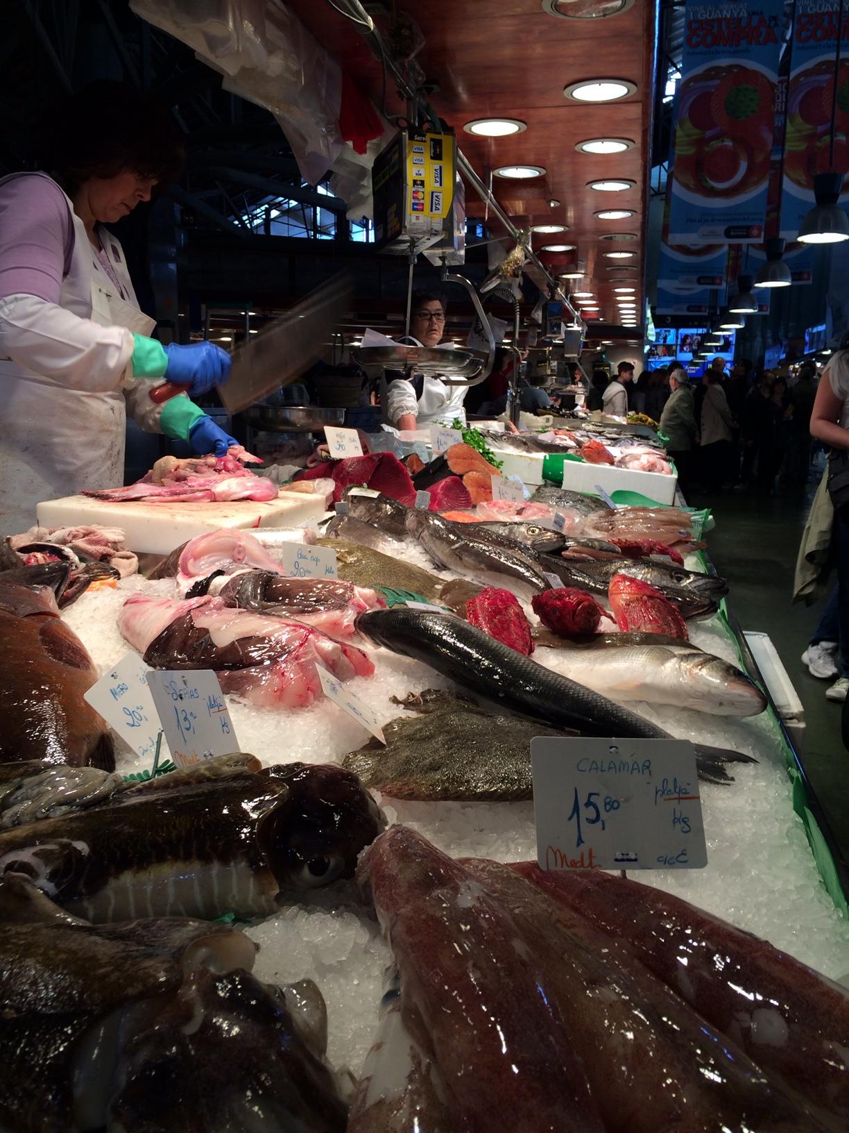 Quoi? TheMouse est malade? Elle s’intéresse à un Marché plutôt qu’à son shopping? Je vous rassure, la santé mentale de TheMouse va bien, mais vu que si vous allez à Barcelone, vous ne pouvez pas ne pas aller traîner sur la Rambla… Et quasiment à hauteur de Custo et Uissos (un peu avant ces boutiques sur la gauche en remontant la Rambla), allez faire un tout sur le marché de la Boquiera