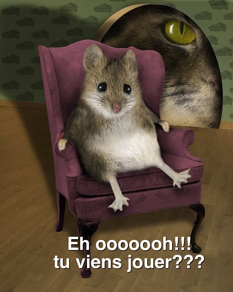 Des choses (mal rangées) tombent et là, je comprends d’un coup le pourquoi de ce vent de folie des cats… Une souris des champs!