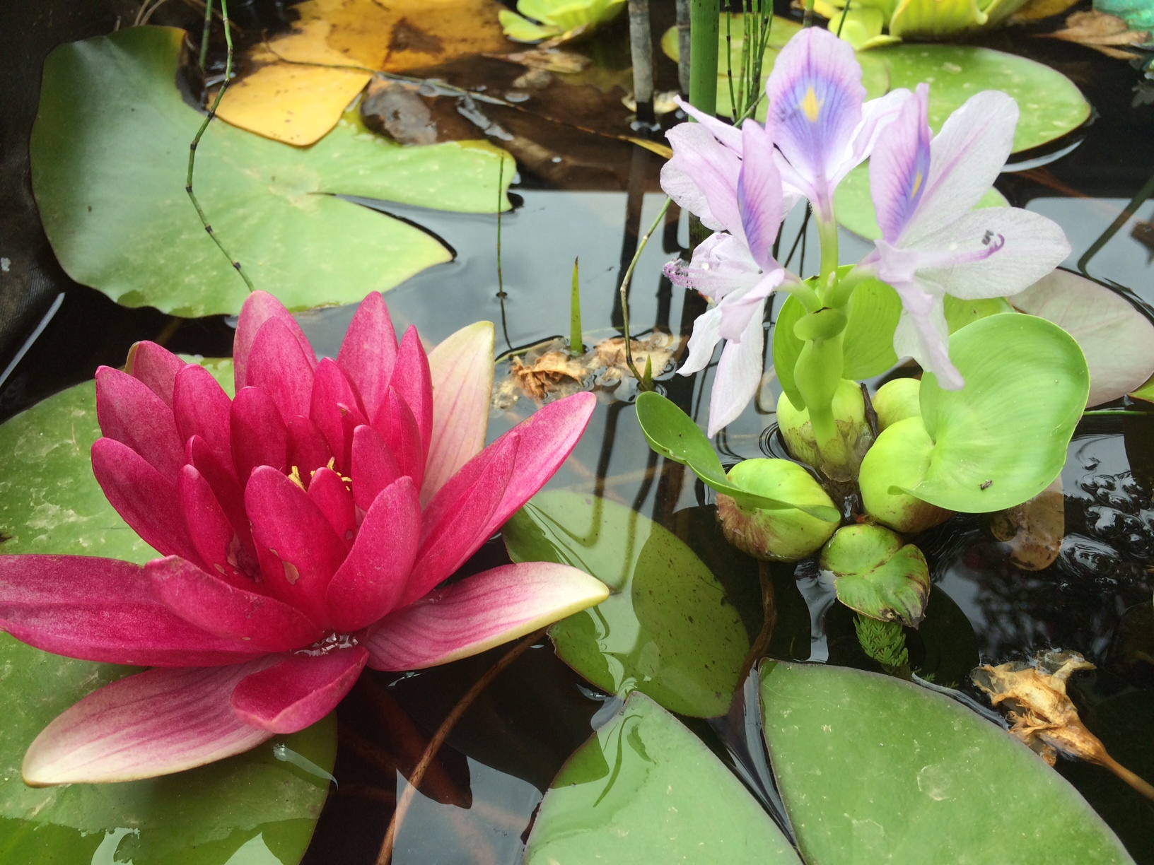 Cette année est exceptionnelle pour le bassin: des fleurs et reproduction des poissons!!!