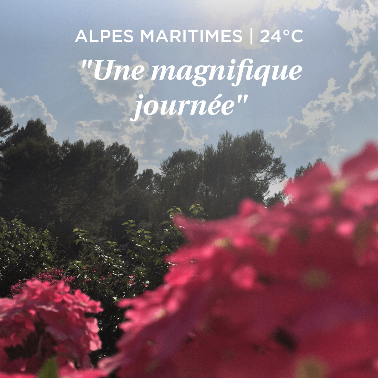 Plaisir des yeux (photos)Point météo… Encore une magnifique journée aujourd hui! Posted on 04/08/201419/10/2014 Partager avec:Tweet Envoyer un lien par e-mail à un ami(ouvre dans une nouvelle fenêtre) E-mail J’aime ça :J’aime chargement… Articles similaires