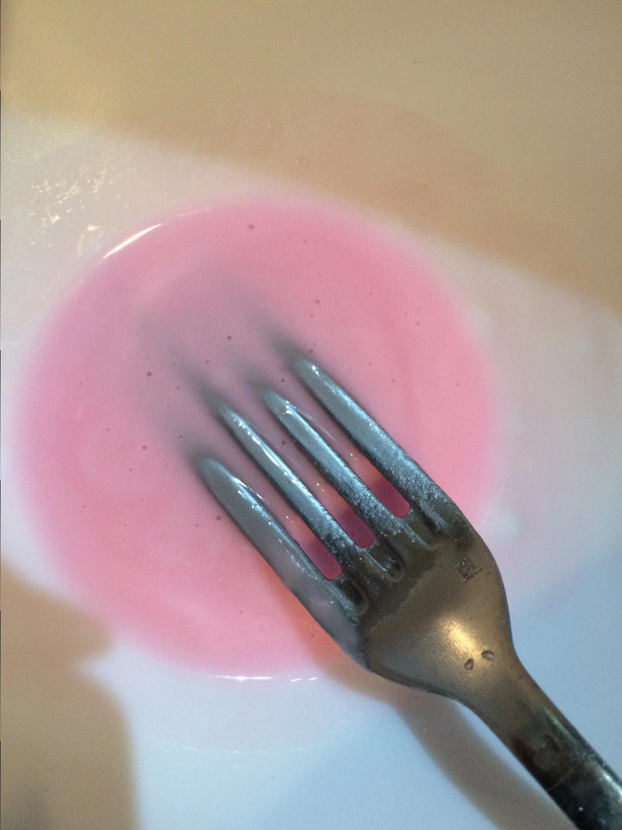 Pour la déco… Un peu de sucre glace… Une goutte de colorant si vous en avez (c’est pour le fun!)… Et vous délayez avec un peu d’eau pour obtenir une pâte pas trop fluide.