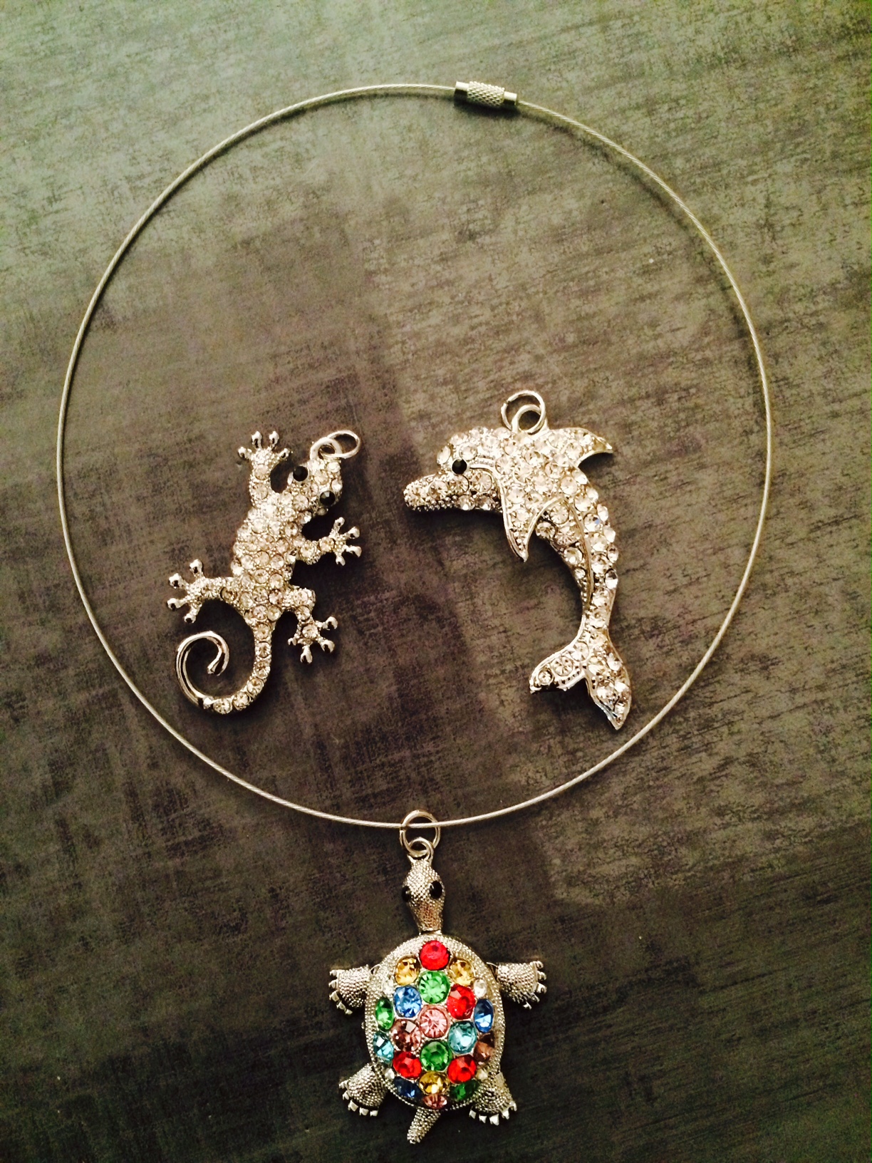 C’est l’astuce… on détourne un porte clé pour avoir un motif original en collier!!!).