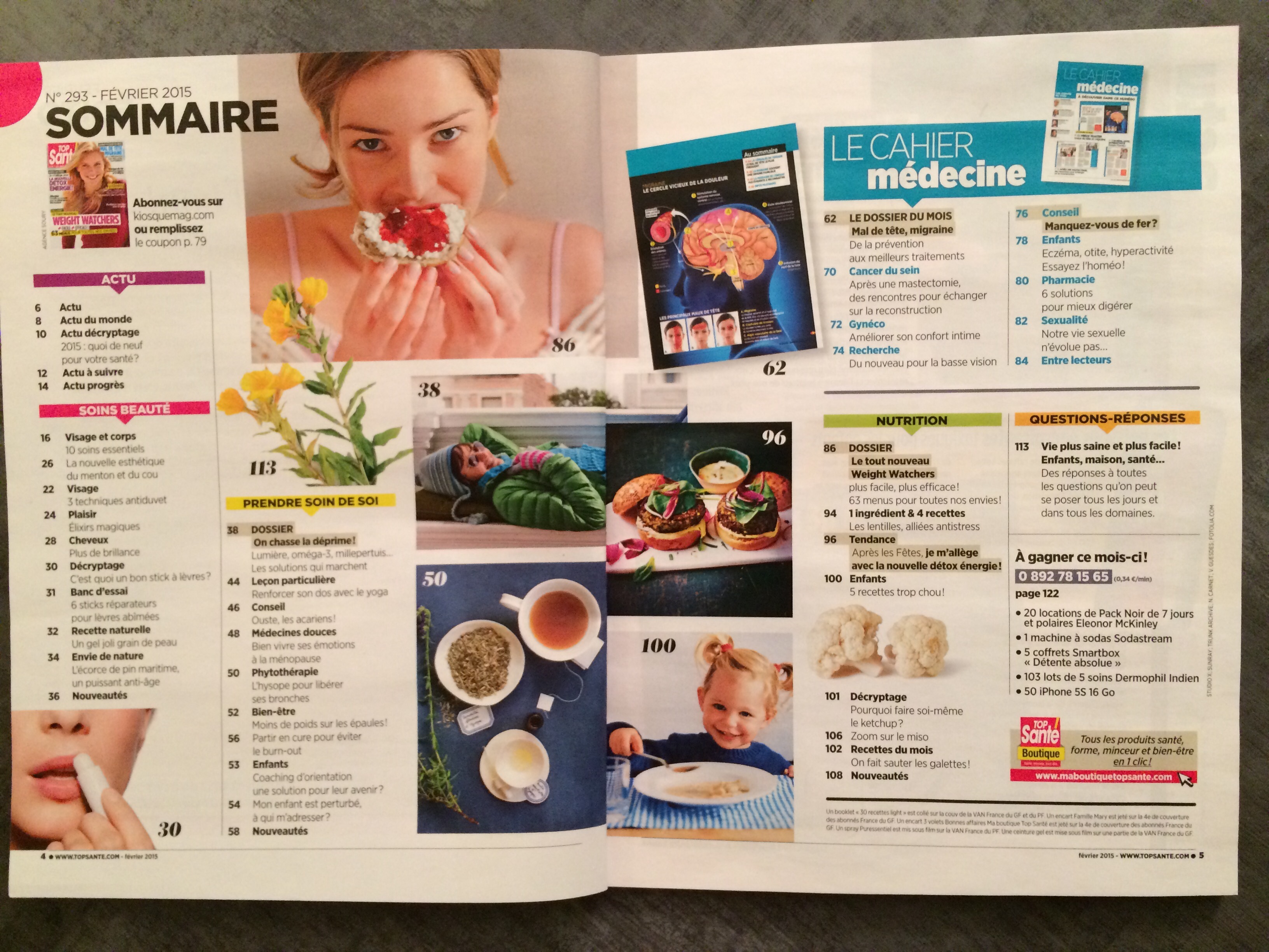 Avec le Top Sante de février 2015 sont offerts un petit livre de 30 recettes light.. Et un flacon Puressentiel assainissant 75ml (quand on connaît le prix d’un
