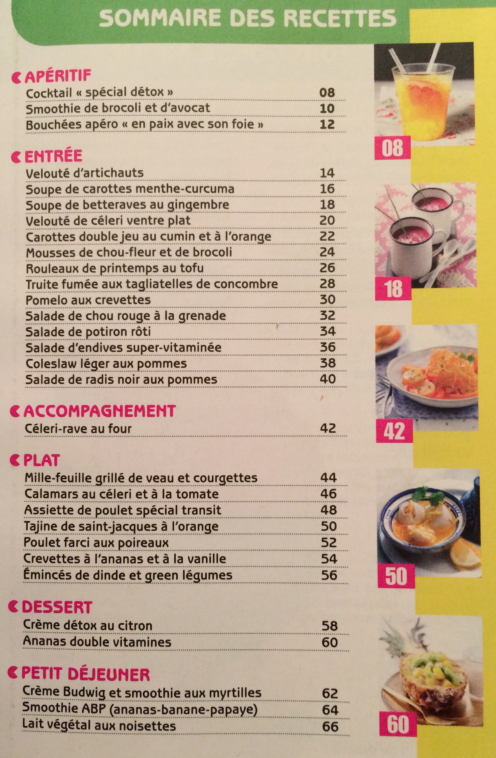 Quant au petit livre offert « 30 recettes light… Voilà le sommaire, plutôt sympa: