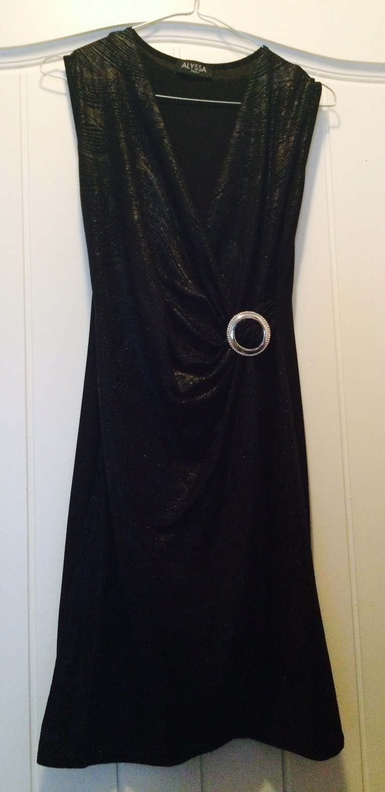 Robe noire à reflets brillants et drapée a la taille trouvée dans ma boutique Pink dont je vous ai déjà parlé ici http://themouse.org/2014/06/19/haul-colore-chez-pink-a-peymeinade/