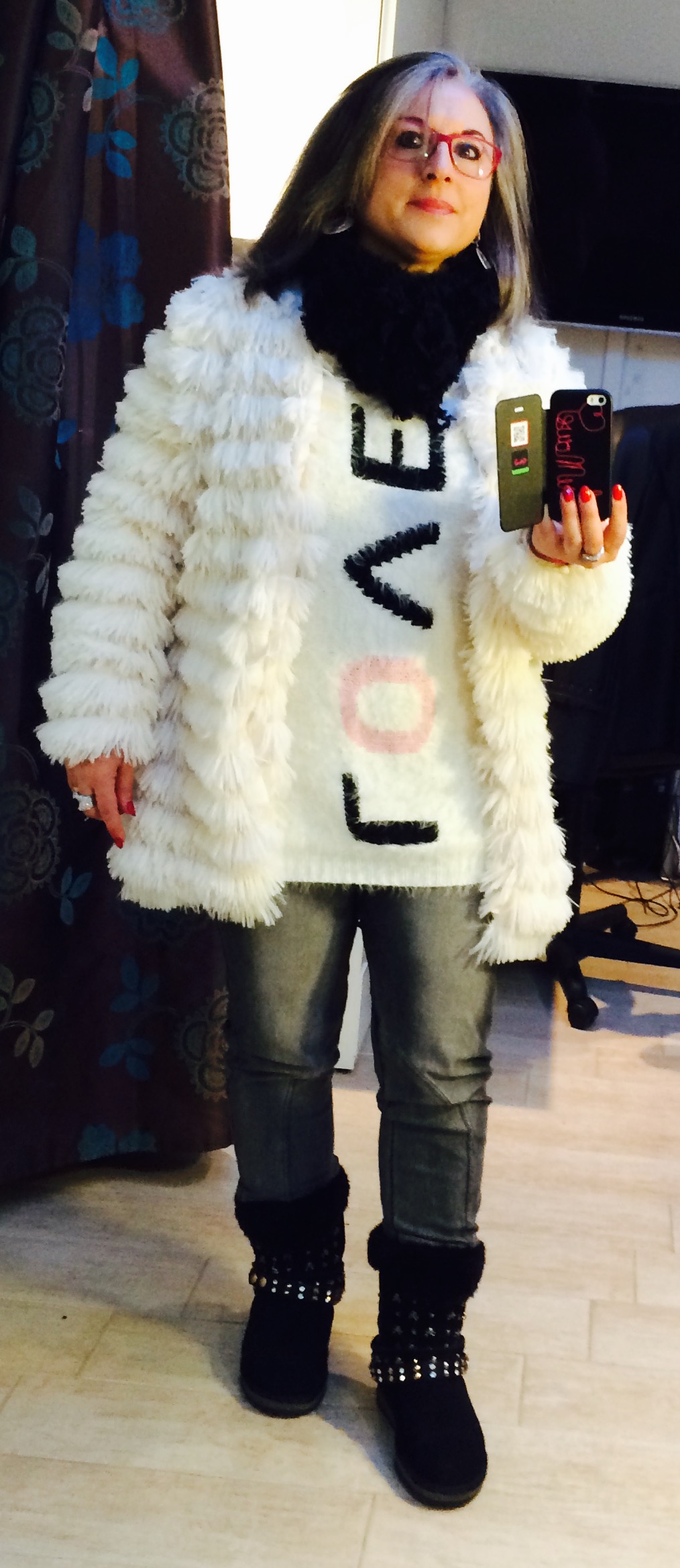 Tout en douceur et couleur hivernale avec ce blanc! les mitaines sont marrantes avec cette fourrure