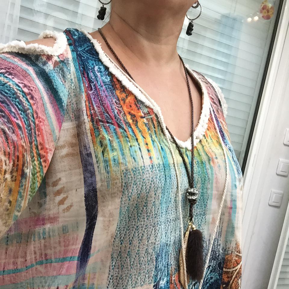 Collier plume et poils, boutique Badaboum Mandelieu la Napoule, automne 2015